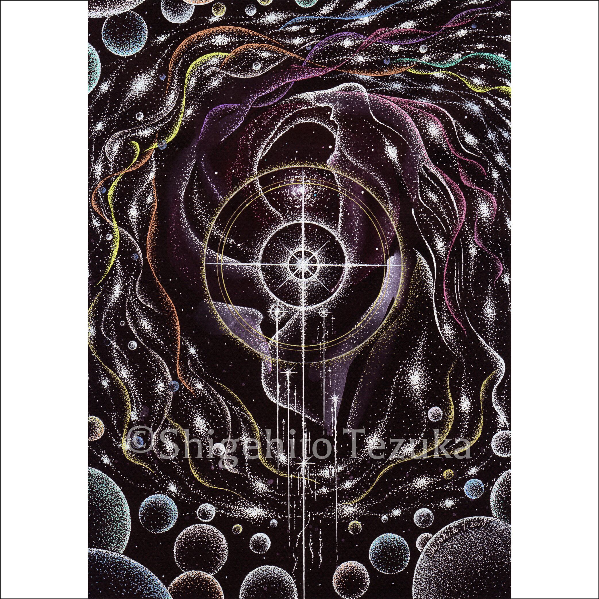この点描画は完成を意図せず導かれるままに描かされ、生まれたものです。
